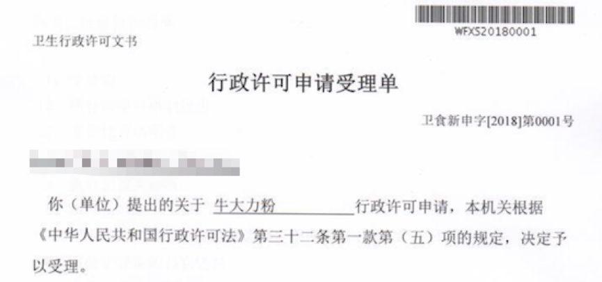 2018年1月17日,企業(yè)委托我司申報的“牛大力粉”正式獲得國家衛(wèi)計委受理,受理編號為:衛(wèi)食新申字(2018)第0001號,這也是2018年第一個新食品原料獲得受理,由于國家衛(wèi)計委公共查詢系統(tǒng)更新較慢,目前截至發(fā)稿還未公示,相信很快就會在國家衛(wèi)計委網(wǎng)站上公示。