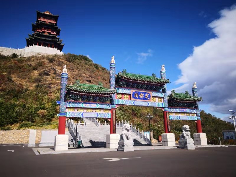定都峰海拔680米,位于門頭溝區(qū)潭柘寺鎮(zhèn)桑峪村東北獅山山頂。其位置正處在長安街向西的延長線上,是傳說中"燕王喜登定都峰,劉伯溫一夜建北京"的所在地,明成祖朱棣登此山后曾感嘆不已:"此峰位之觀景之妙,無二可代,天賜也。"峰頂新建一閣名定都閣。