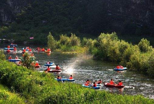 隨后大家在購(gòu)好票穿戴好裝備后開(kāi)始了期待已久的漂流。大家都很活躍,心情格外好。在漂流谷中,皮艇時(shí)而飛快時(shí)而緩慢,當(dāng)皮艇飛快地穿梭在群山環(huán)繞的漂流河中,“兩岸猿聲啼不住 輕舟已過(guò)萬(wàn)重山”的感覺(jué)油然而生。在蜿蜒曲折的河流中,兩岸忽而懸岸陡壁,如過(guò)山車;在驚險(xiǎn)的狂叫中釋放了日常工作生活的壓力,兩個(gè)人自然的配合形成了最好的合力。這一刻,大家忘記了一切的煩惱憂愁,盡情的享受大自然給予的洗禮。
