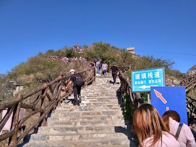 游玩期間全員體驗(yàn)了“誓言”玻璃棧道的驚險(xiǎn)刺激之旅,“誓言”玻璃棧道位于十渡鎮(zhèn)“騰龍•仙苑”旅游度假風(fēng)景區(qū),建于景區(qū)主峰鵲橋嶺之顛,峭壁之上,全長(zhǎng)150米,落差300余米,318平觀景禮佛臺(tái),讓您盡享不一樣的激情與刺激。立于棧道之上,環(huán)視四周高山美景,峭壁嶙峋。俯視下方,高達(dá)百米,據(jù)馬河水清澈如鏡,梯田遍布盡收眼底。