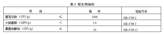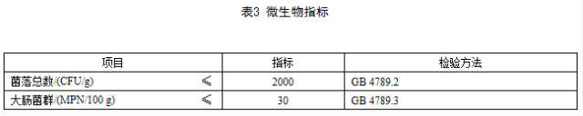 微生物指標應(yīng)符合表3的規(guī)定。