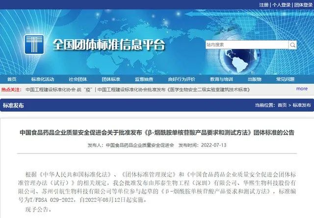 再加上《食品中β-煙酰胺單核苷酸(NMN)含量測定 高效液相色譜法》和《化妝品中β-煙酰胺單核苷酸(NMN)含量測定 高效液相色譜法》兩項團體標準項目的立項,將進一步填補國內(nèi)NMN行業(yè)空白,規(guī)范NMN及相關(guān)產(chǎn)品發(fā)展。