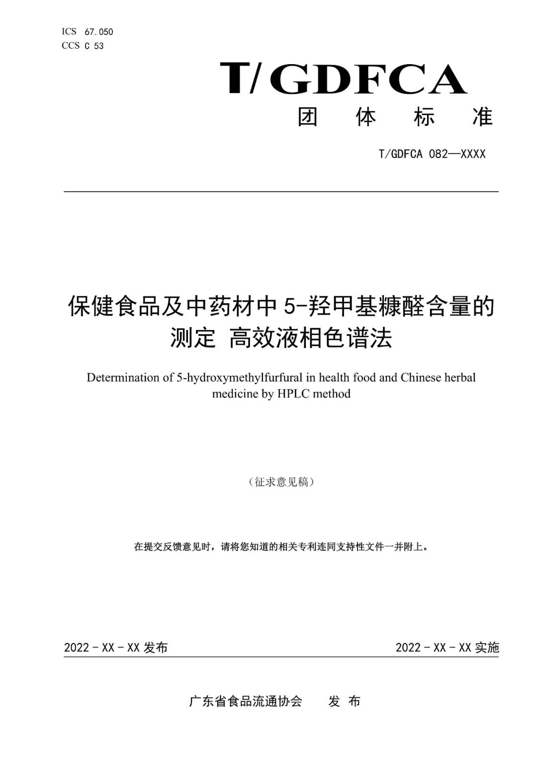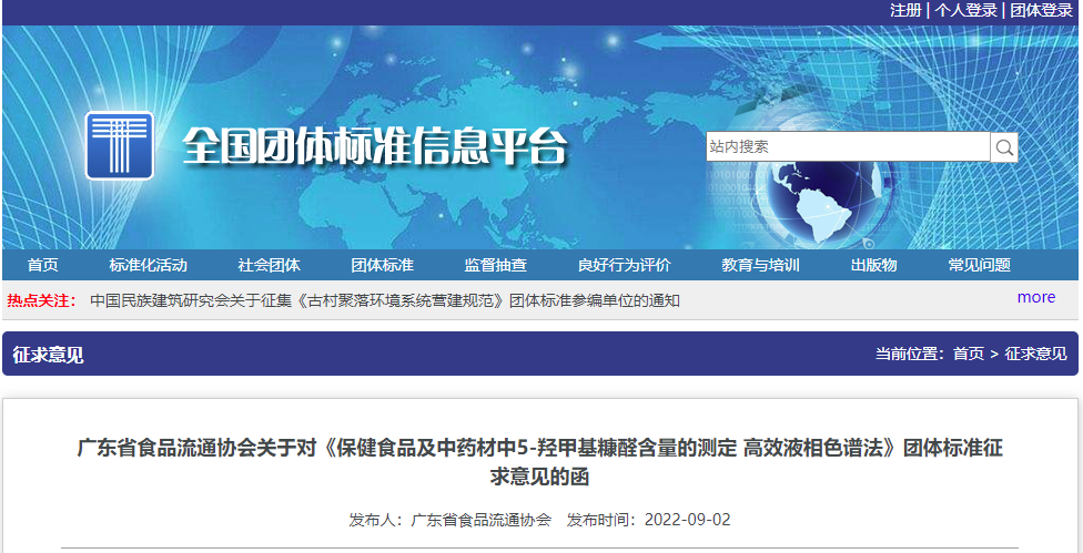 由廣東省食品流通協(xié)會提出的《保健食品及中藥材中5-羥甲基糠醛含量的測定 高效液相色譜法》團體標(biāo)準(zhǔn)已完成征求意見稿,為保證團體標(biāo)準(zhǔn)的科學(xué)性、實用性及可操作性,現(xiàn)公開征求意見。