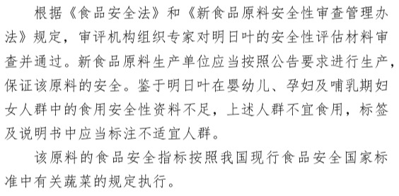 受國(guó)家衛(wèi)生健康委員會(huì)委托,根據(jù)《食品安全法》和《新食品原料安全性審查管理辦法》的規(guī)定,近期明日葉已通過專家評(píng)審委員會(huì)技術(shù)審查,現(xiàn)公開征求意見,請(qǐng)于2018年9月7日前將意見反饋至我中心,逾期將不予處理。