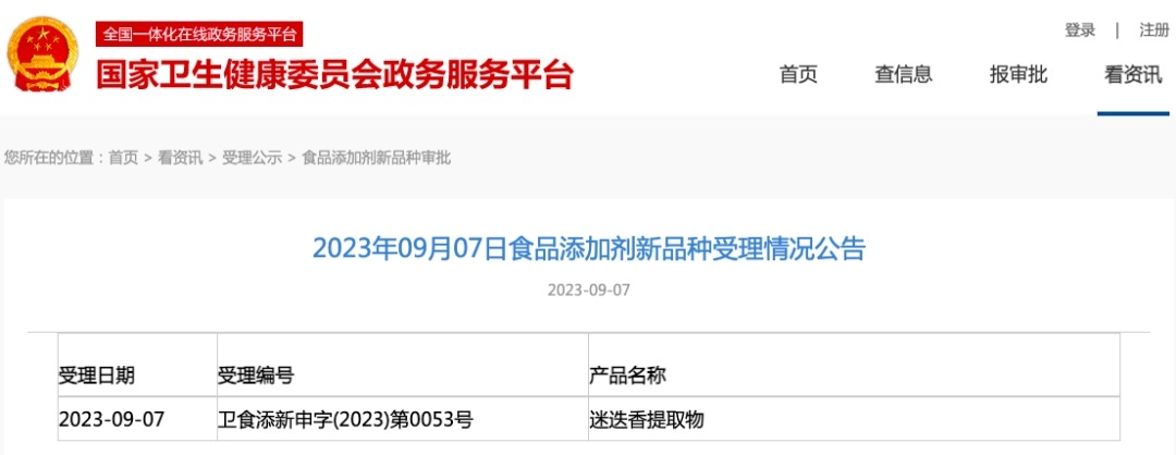 受理編號:衛(wèi)食添新申字(2023)第0053號