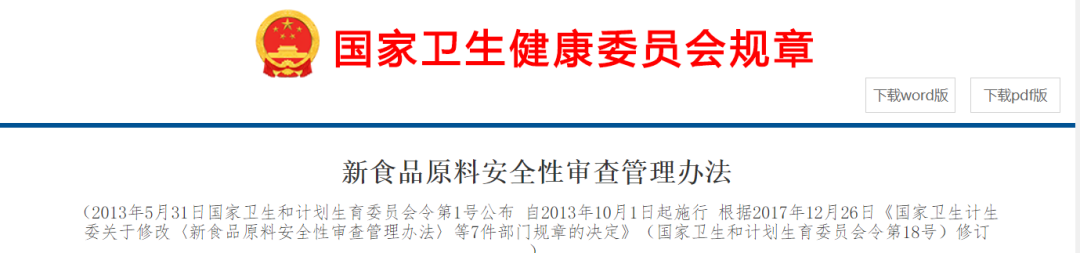 國家衛(wèi)健委認(rèn)定實(shí)質(zhì)等同的新食品原料目錄