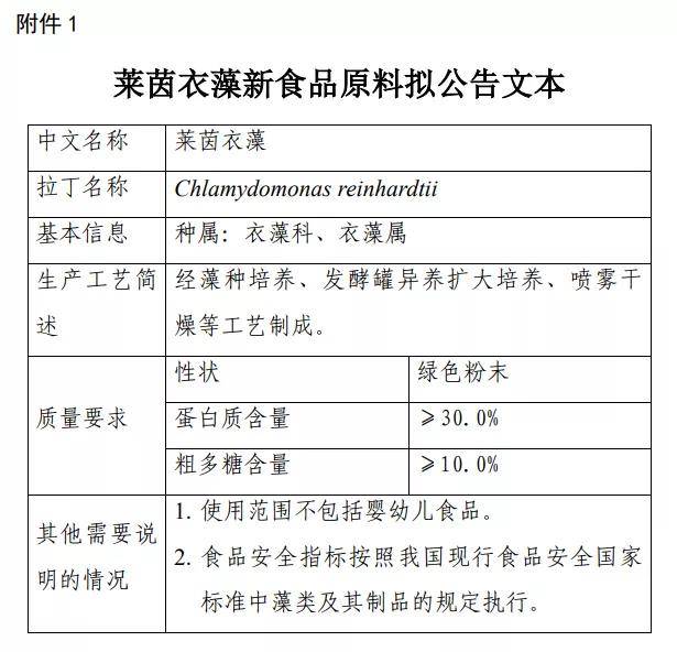 附件為萊茵衣藻新食品原料征求意見內(nèi)容及相關(guān)解讀材料,請自行下載閱讀。如有意見或建議,請反饋至xspyl@cfsa.net.cn,并在郵件主題中注明“新食品原料意見反饋”。